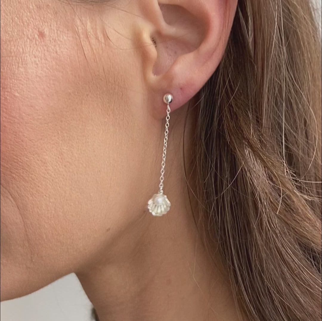 Shell and Pearl Chain Stud Earring